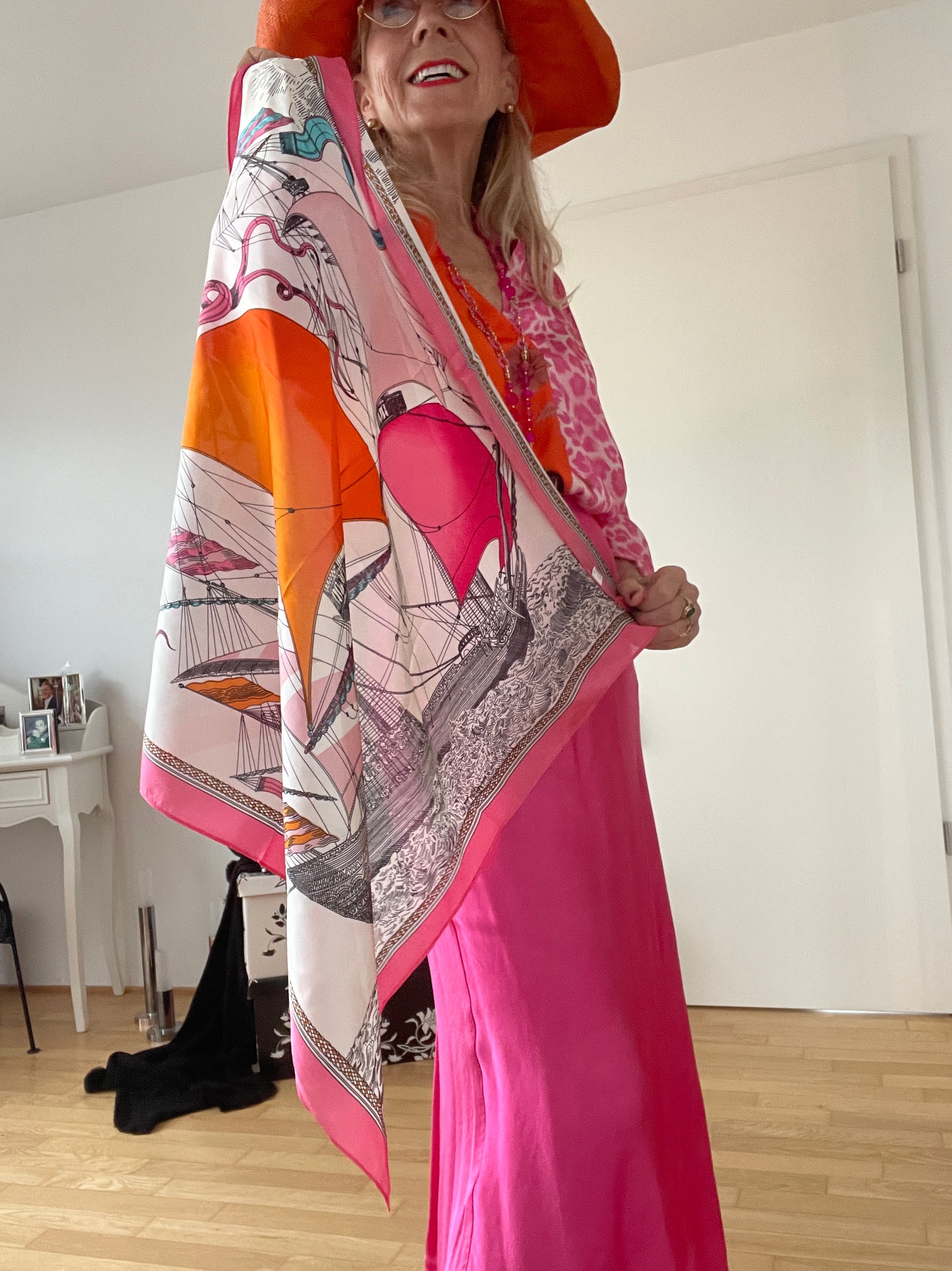 Ein perfekt Tuch mit farbenfrohen abgestimmten Farbakzenten, das garantiert alle Blicke auf sich zieht.